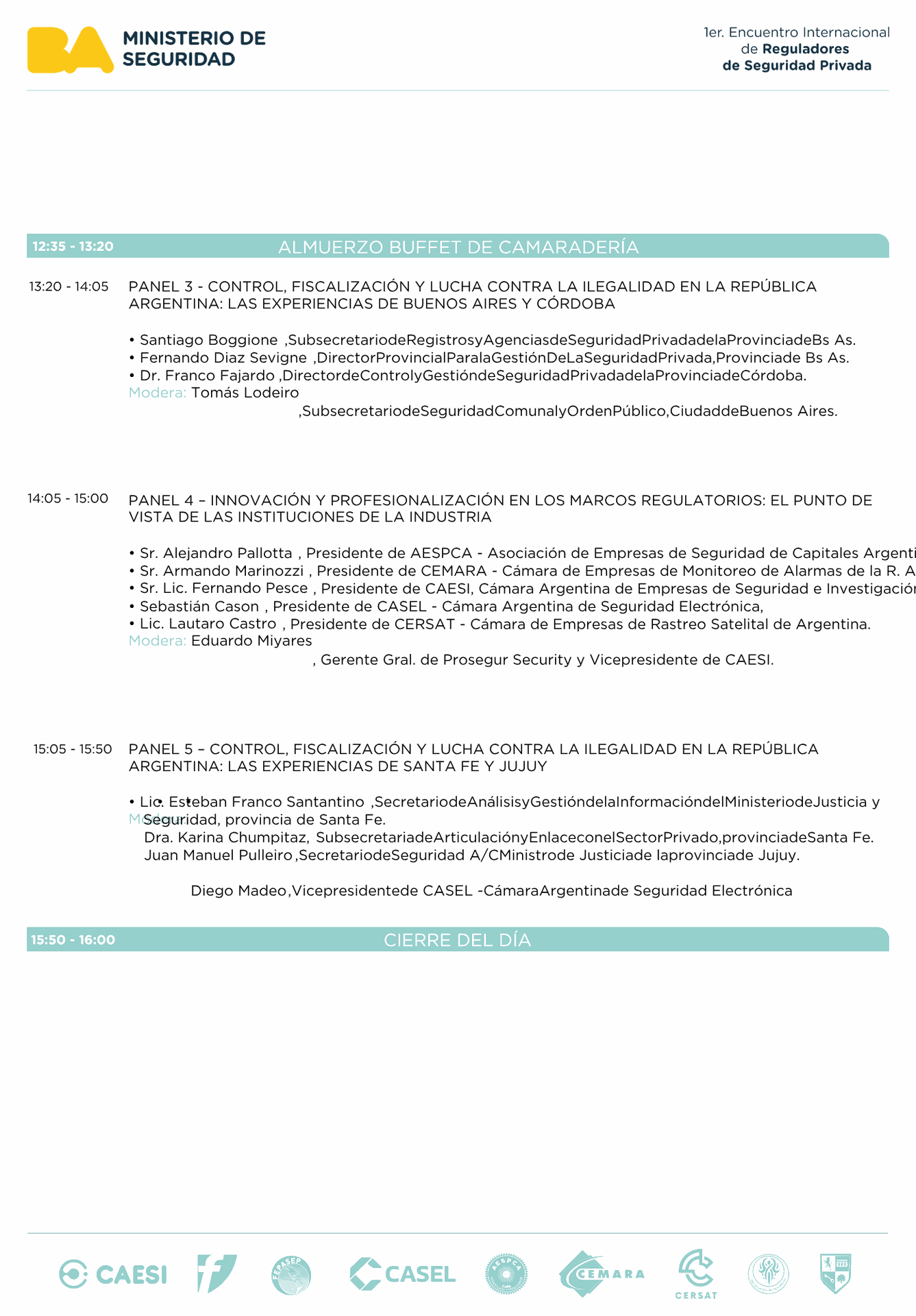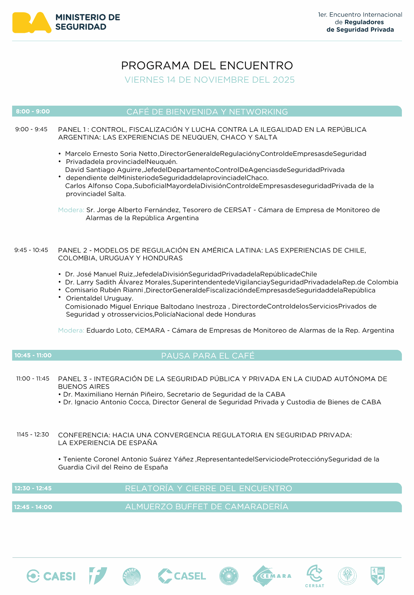 La Ciudad de Buenos Aires tiene el agrado de invitar a las autoridades, cámaras empresarias y profesionales del sector a participar del 1er Encuentro Internacional de Reguladores de Seguridad Privada, que se llevará a cabo los días 13 y 14 de noviembre de 2025 en el Auditorio Principal de la Casa de Gobierno de la Ciudad (Uspallata 3150, CABA).